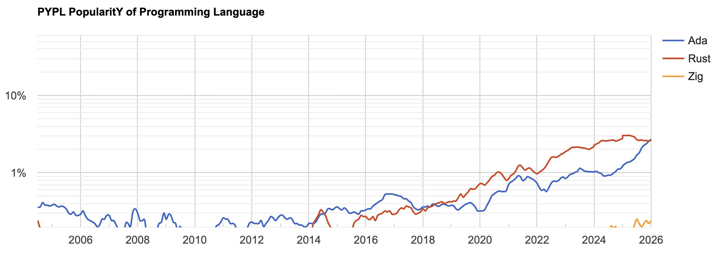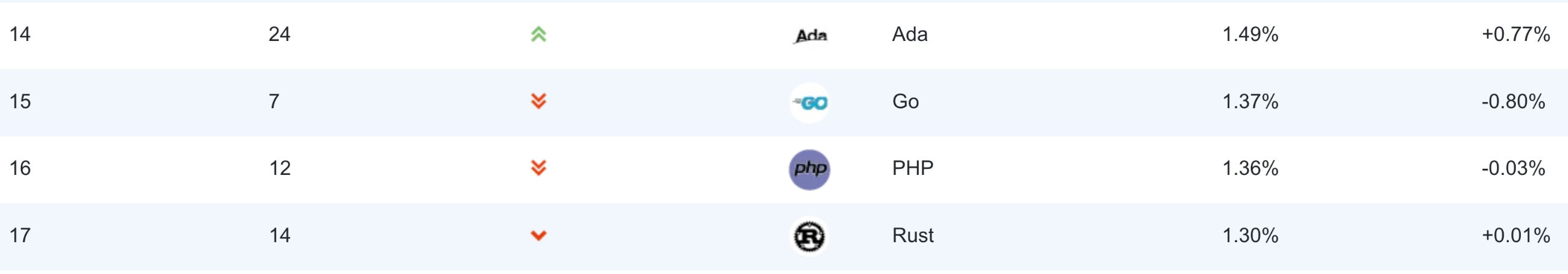 Finally Ada overtook Rust on both TIOBE and PYPL.