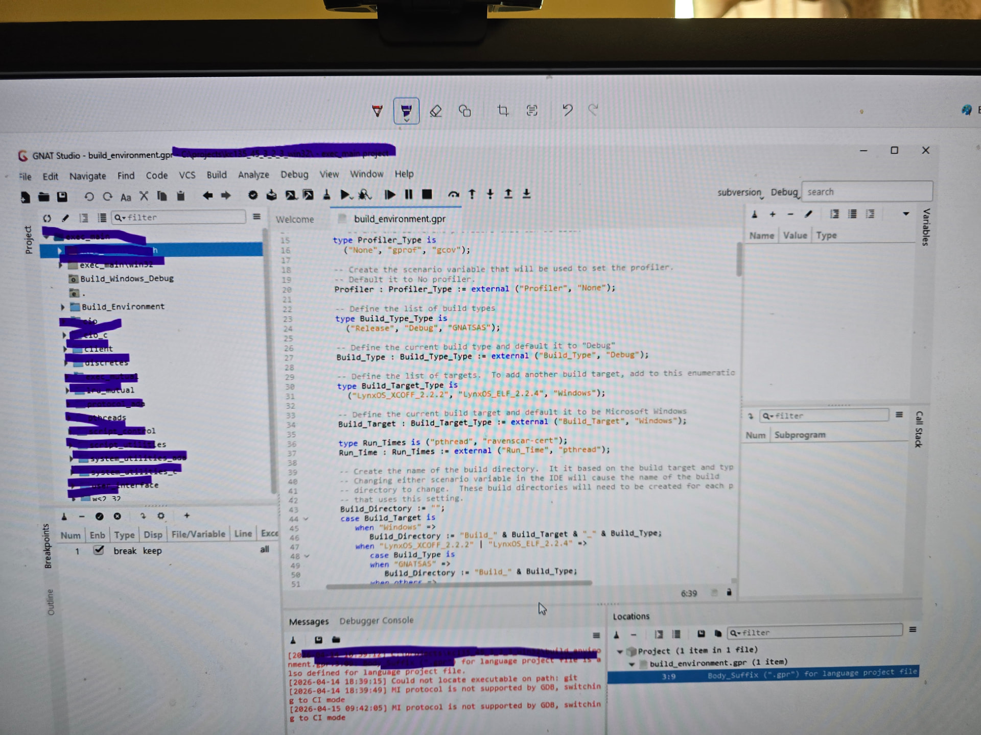 I used to have gnat ide with a nice project layout windows, call stack, variables, messages, locations, breakpoints and then I must have done something to screw it up. It was easy to maneuver in debug mode or just analyze profile