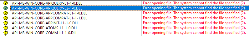 Oops, while I was typing this it came up. There are indeed a lot of DLL’s it cannot find, but at least some of them look like Window API’s: