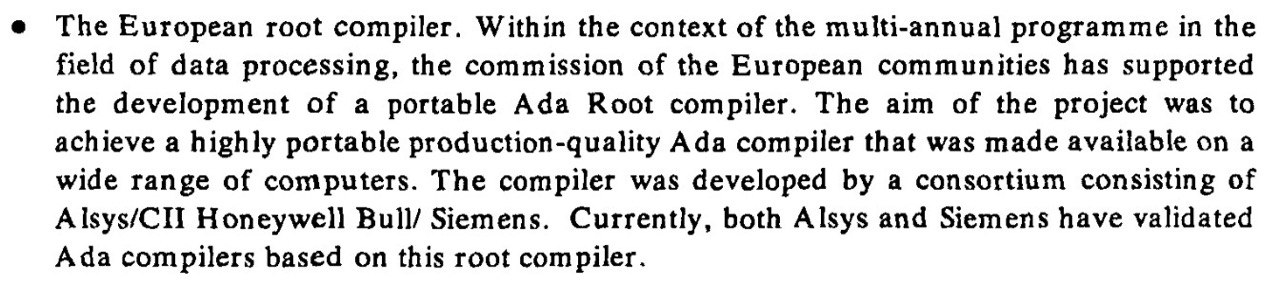 There’s really some interesting things about Ada- that might justify doing the work. It has tasking for example and that really makes it something special. If you read Jan’s thesis then you hear the belief that this compiler could be worked into something that covers Ada 83 completely. Given the supported feature set I think that’s indeed feasible. But it would require quite a bit of work. Work that’s also not in Ada, so you do have to enjoy C to a certain degree as well.